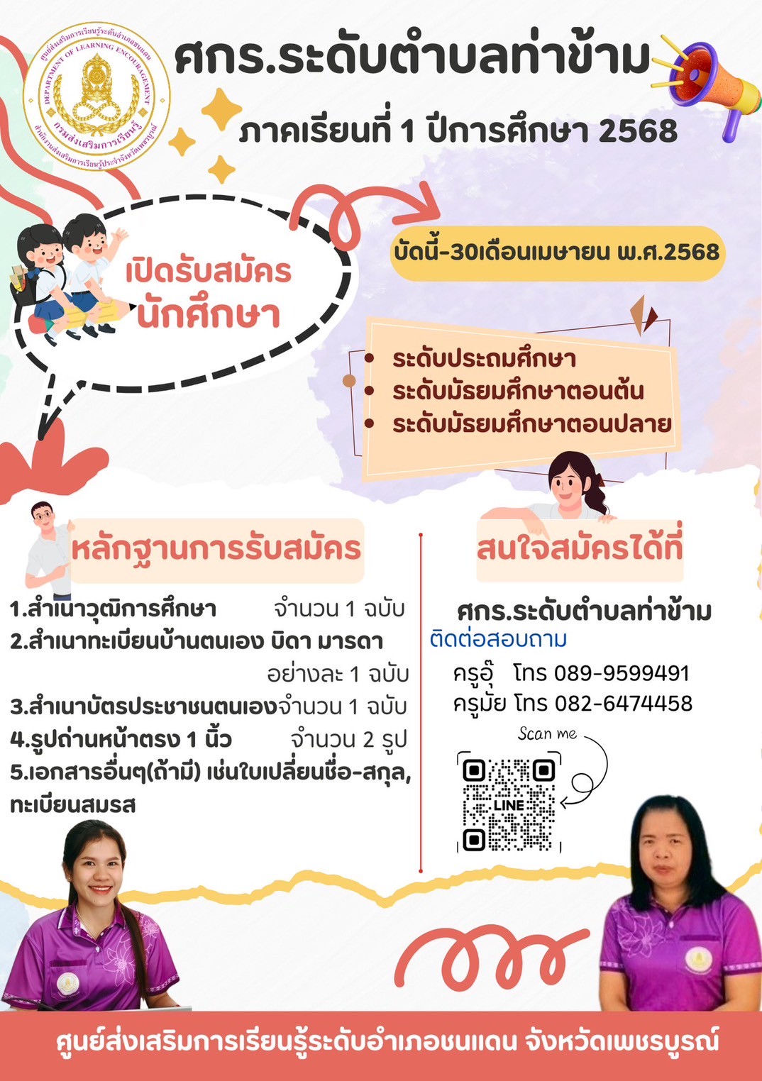 ศกร.ระดับตำบลท่าข้าม รับสมัครนักศึกษาใหม่ ประจำภาคเรียนที่ 1 ปีการศึกษา 2568