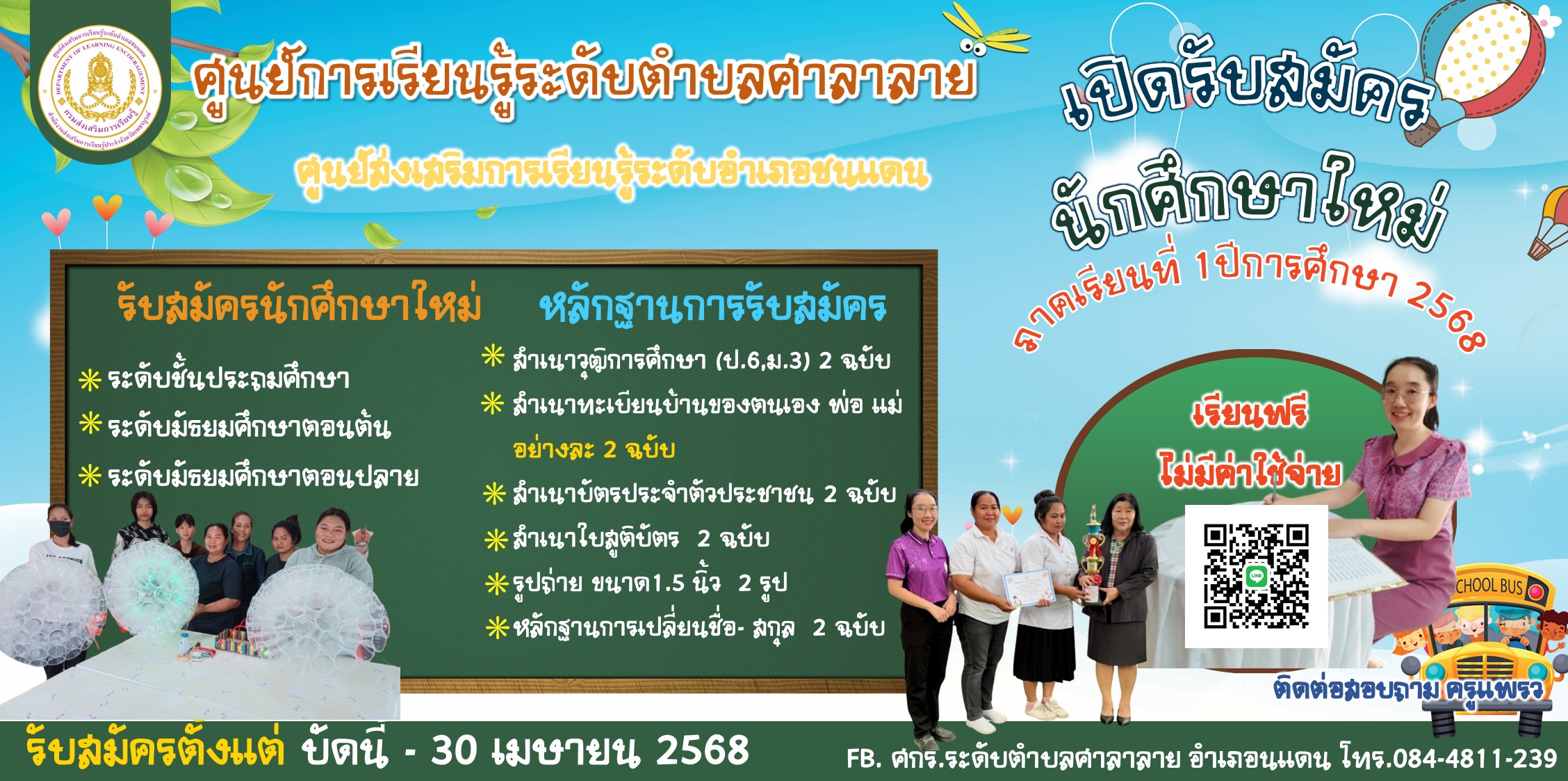 ศกร.ระดับตำบลศาลาลาย รับสมัครนักศึกษาใหม่ ภาคเรียนที่ 1 ปีการศึกษา 2568