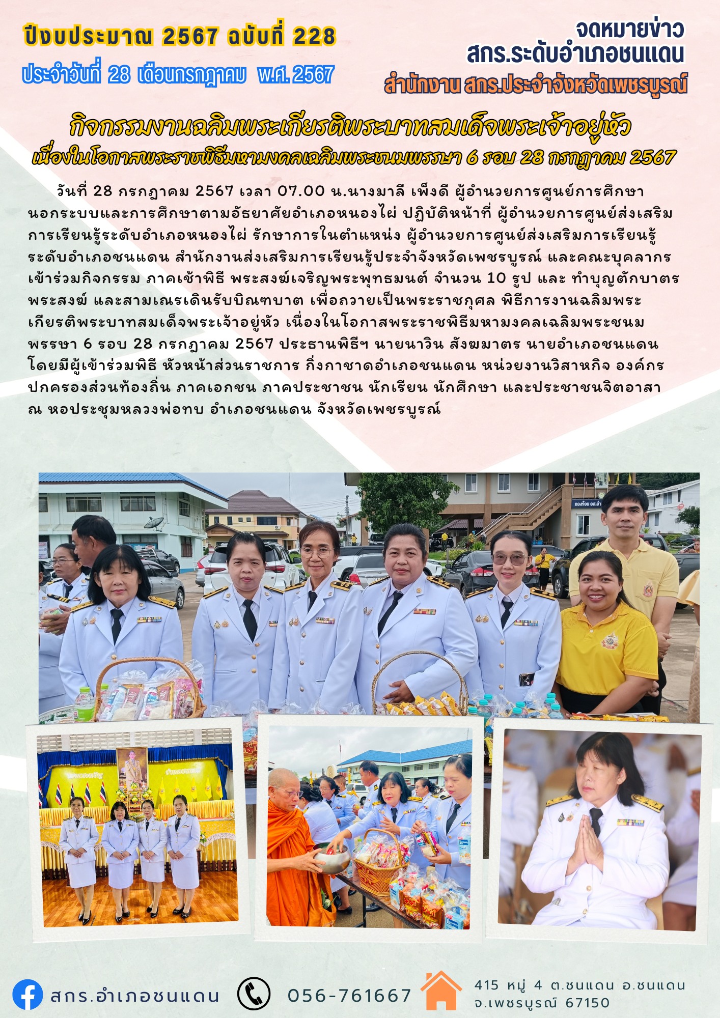 พิธีการงานฉลิมพระเกียรติพระบาทสมเด็จพระเจ้าอยู่หัว เนื่องในโอกาสพระราชพิธีมหามงคลเฉลิมพระชนมพรรษา 6 รอบ 28 กรกฎาคม 2567